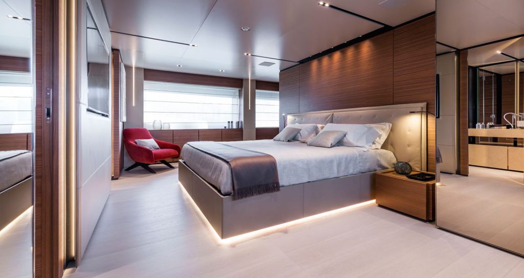 The Navetta 33 yacht was the first project developed for the most exclusive brand of the Ferretti Group. The Poltrona Frau Interiors in Motions division was tasked with furnishing the cabins and the wooden decor of the lounge.