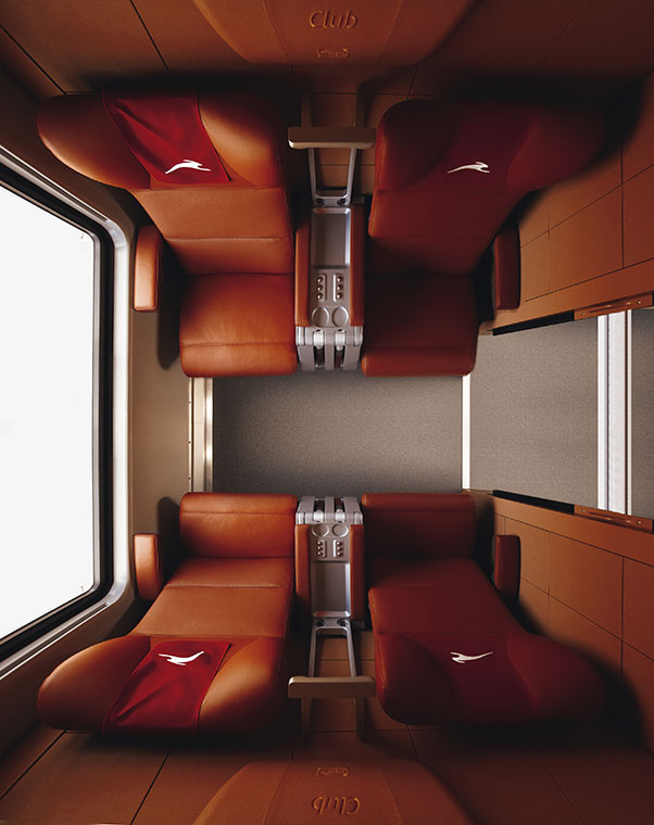 Italo is the brand with which private company NTV – Nuovo Trasporto Viaggiatori promotes its high-speed services. Poltrona Frau furnished the 25 high-speed Italo trains manufactured by Alstom AGV 575.
