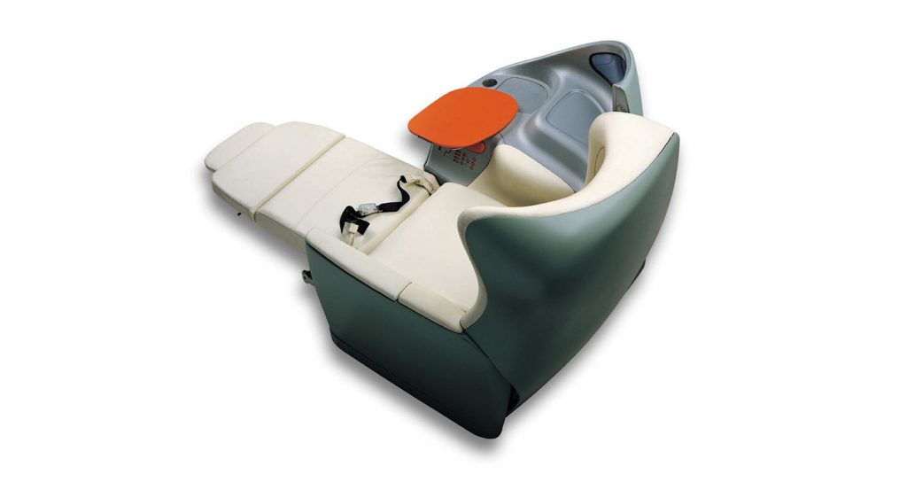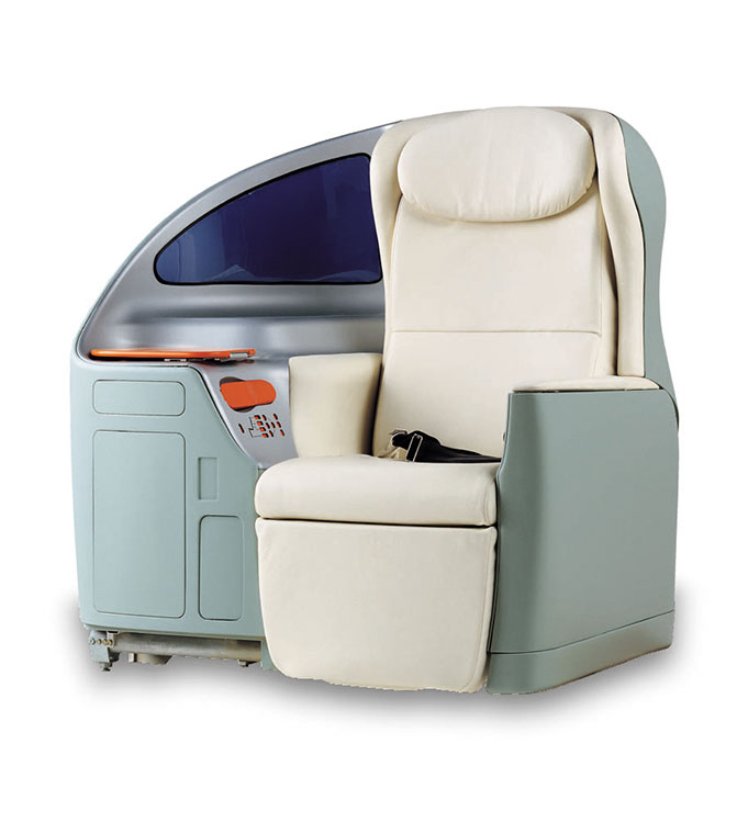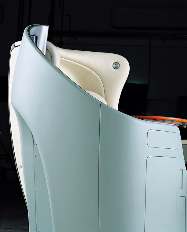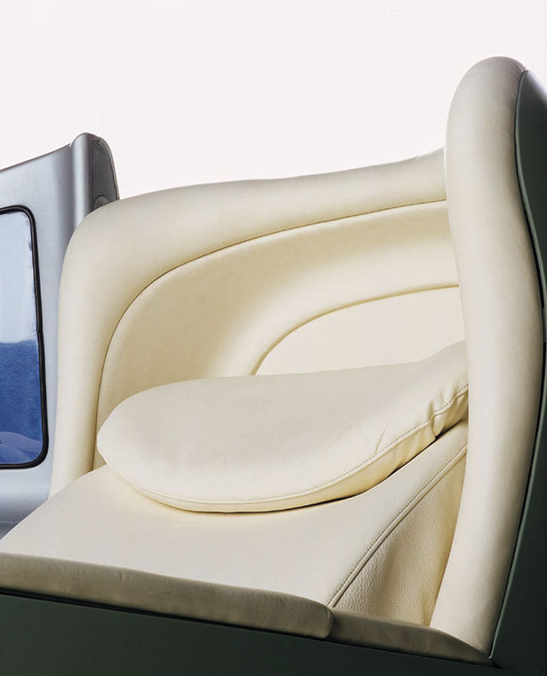 The Sky sleeper seat was the first real project for the Aviation sector, developed and executed by Poltrona Frau according to a 2002 concept by designer Ross Lovegrove. Designed for Japan Airlines, the Sky sleeper seat is entirely upholstered in Pelle Frau® leather, has an organic design and is the quintessential cabin where passengers have everything at their fingertips and are pampered with a wide range of accessories to make their flight, less boring and draining.