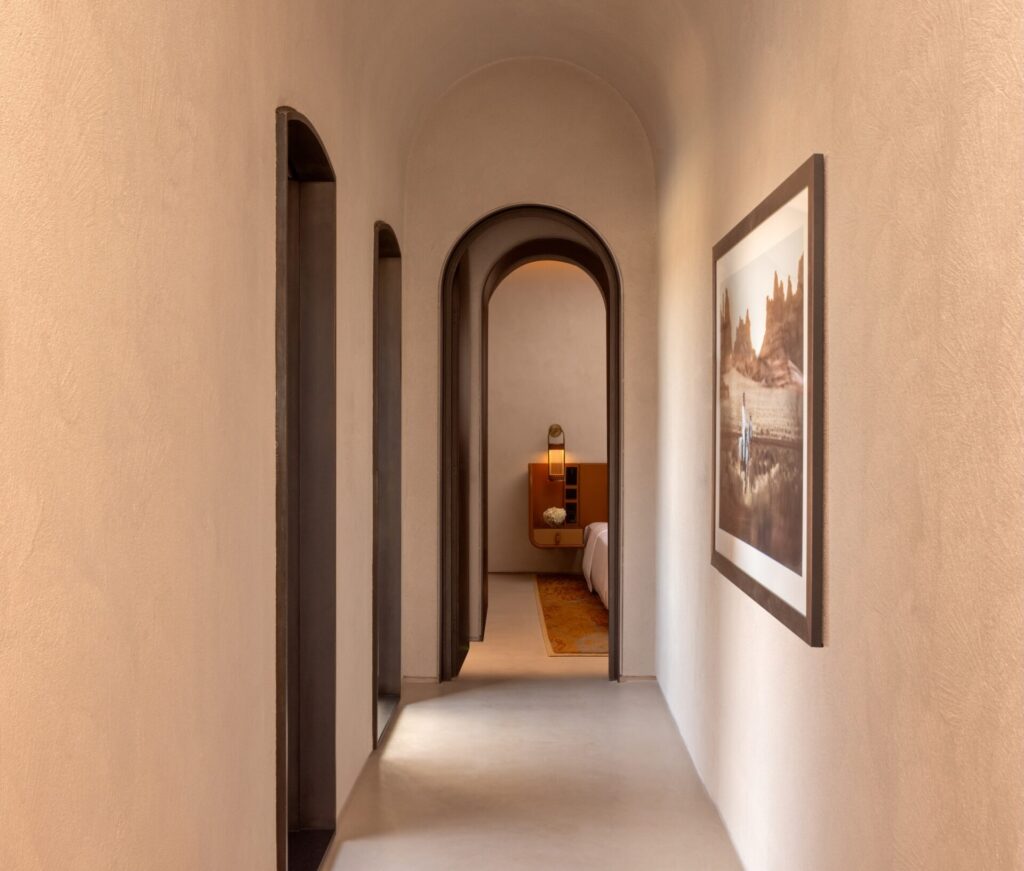 For the design and realization of the upholstered elements, Giò Forma selected Poltrona Frau for its artisanal excellence and ability to deliver bespoke solutions rooted in context. Poltrona Frau contributed custom leather pieces, specifically crafted to reflect the architectural vision of the project—combining timeless design, high-end materials, meticulous detailing, and deep respect for the cultural and natural landscape.