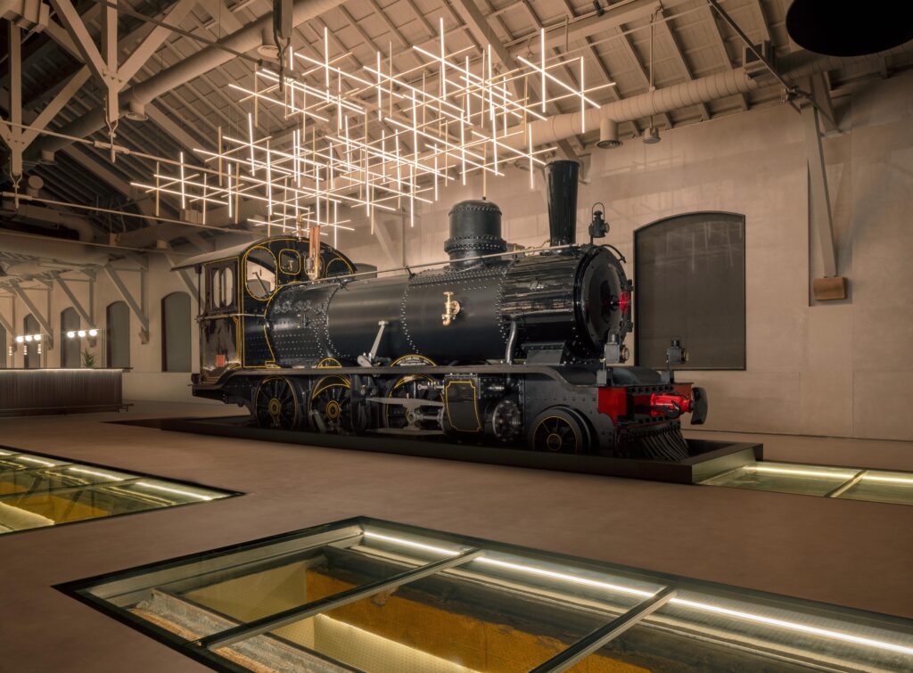 The property features 35 rooms and villas seamlessly integrated into the surrounding desert landscape, with a design approach focused on preservation and light intervention, developed in close consultation with UNESCO. Among its signature elements are the restored Locomotive 964, now featured in the “Prima Classe” dining space, and the Shadow Canopy (Lamellae), a 700-meter sculptural installation that links the buildings across the site.